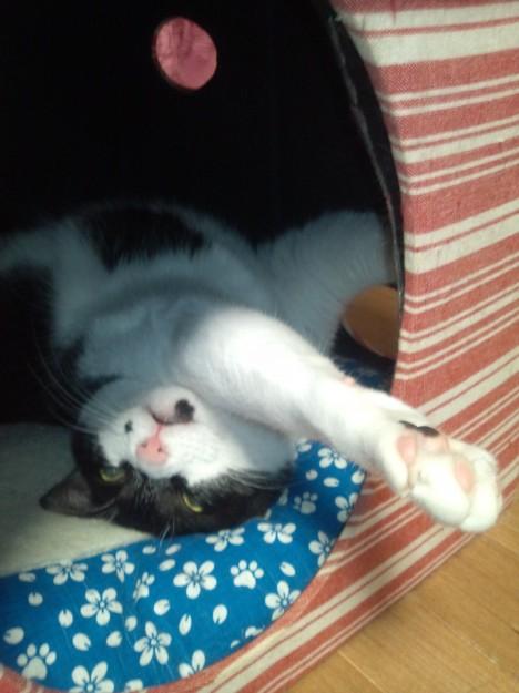 お気に入りのボックス型ベッドの中でお寛ぎ中のライム3連発。