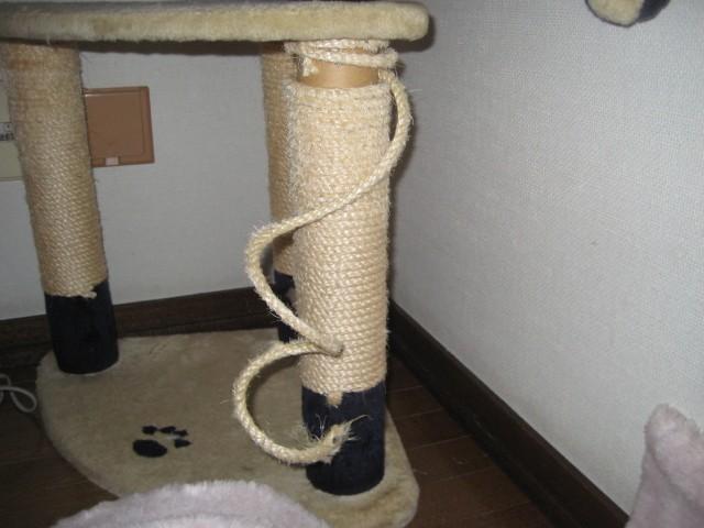 このひもは何? このキャットタワーにこんなロープあったっけ?