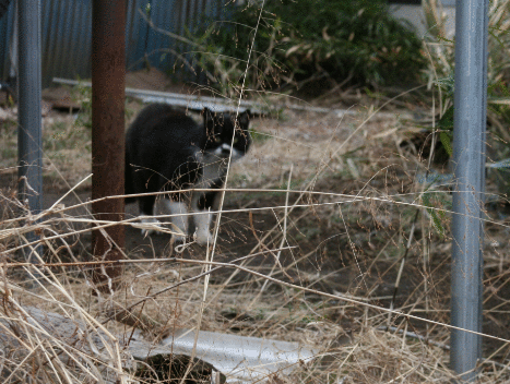 今朝もキジトラ君と「わぁ~おぉう!」と、やり合って勝ったようです。