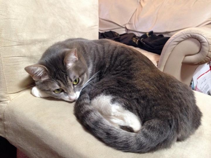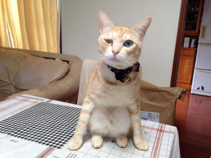 ハンちゃんが面白いカッコで座ってます