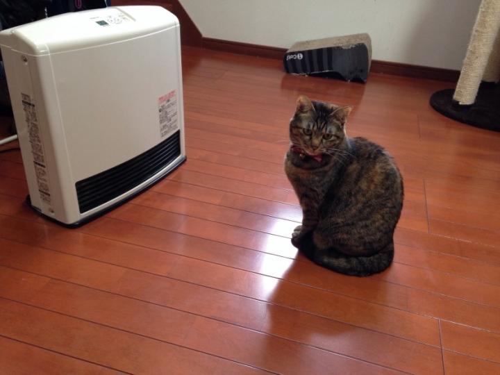 姐さんはファンヒーター前から動かず…