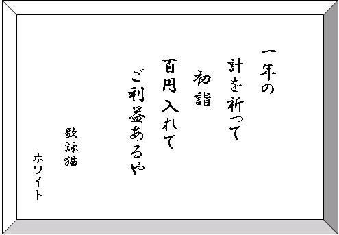 でもね、僕思うんだ。年末にある宝くじだって一枚三百円だよ。でもってなかなか当たらないのに、お参りに行って百円しかお賽銭あげない主にいかほどのご利益あるかと思うとね心配になってくるよ。