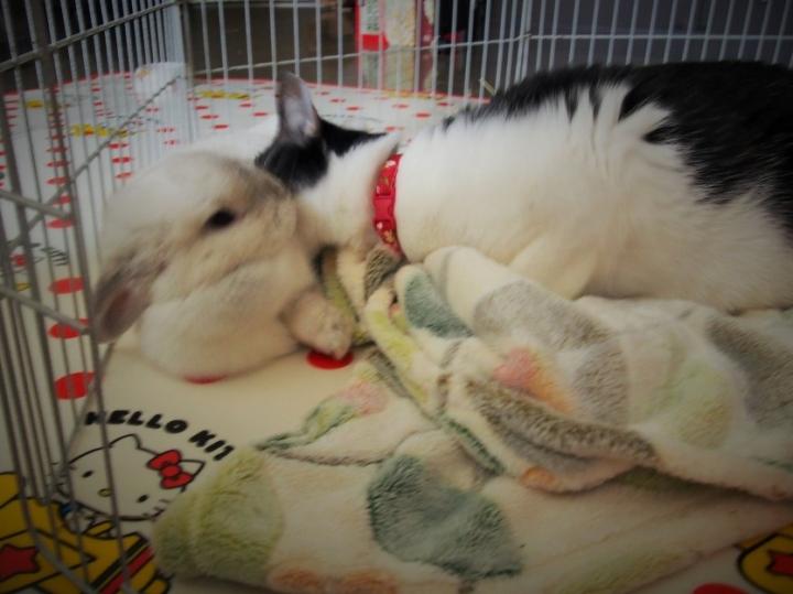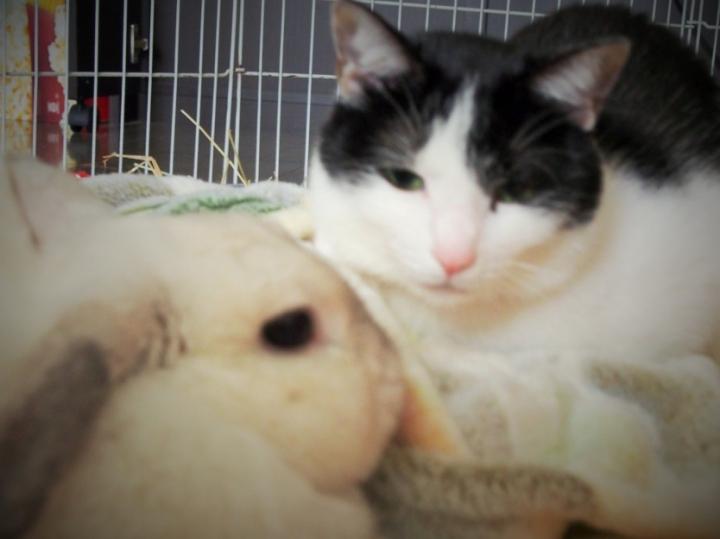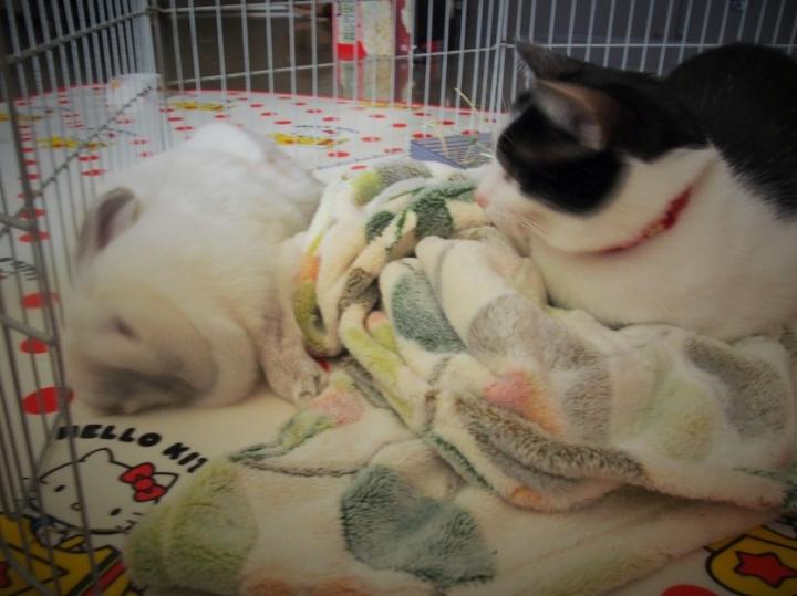 ねこぱんち炸裂でウサギが逃げちゃいましたΣ(゚Д゚)