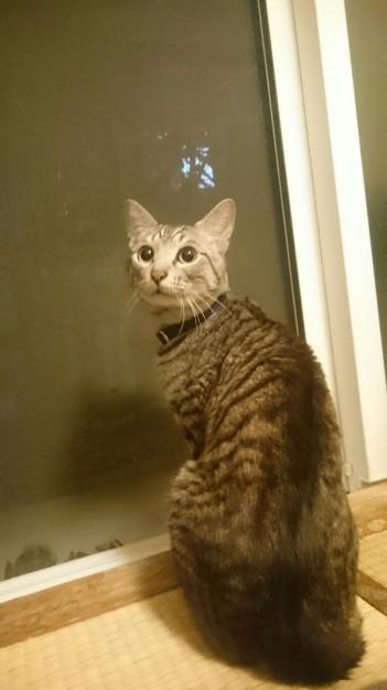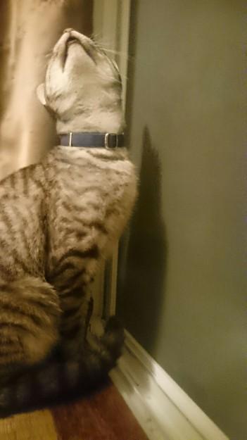 夜、ご機嫌で窓の外を見張るしあ君を夫に撮ってもらいました。