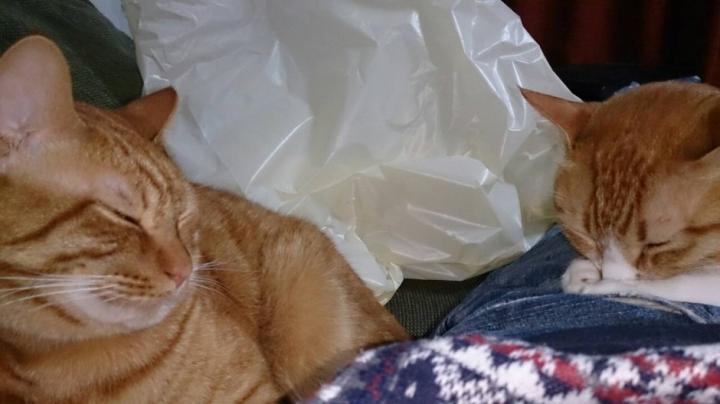 今日も我が家のニャンズに…重いよタムさん、狭いよ小麦…本当に可愛い、猫にかこまれ至福の時(*^^*)