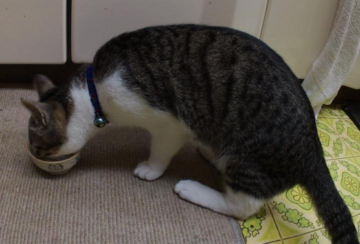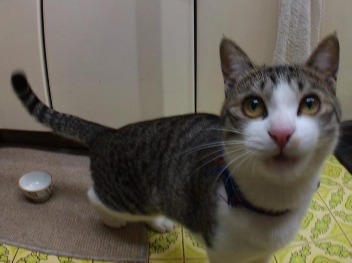 七七保、台所でおやつ、もろたはるよ。ハチ君?