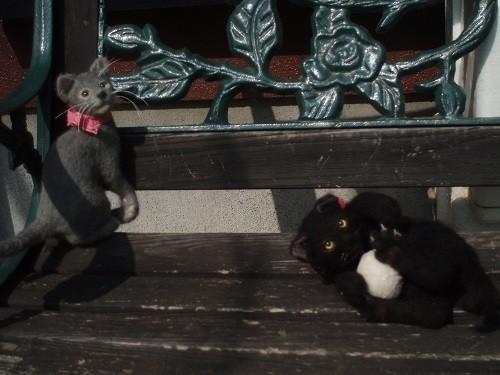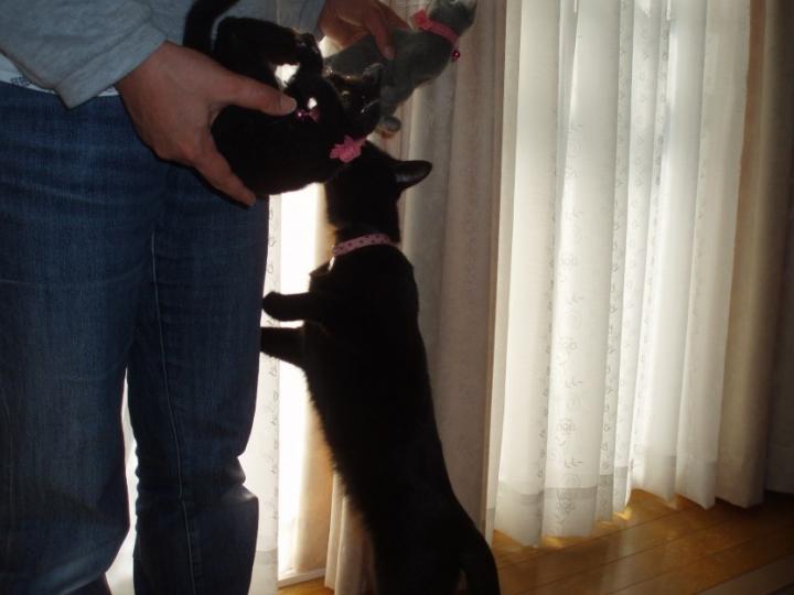 偶然なのでしょうが、おニャン形のキキのしっぽを触ったおねえは、その先が見た目は真っ直ぐで触ると曲がっていることに気付き、本物と同じと驚いてました。