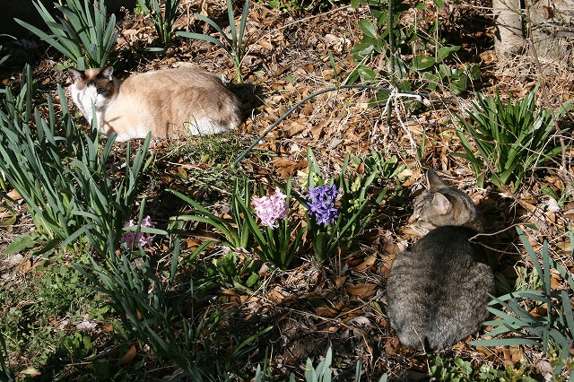 枯れ草をどかせばもう少し見栄えがよくなると思うけど、ほら、猫達の隠れ家や、お昼寝に使うしね~。