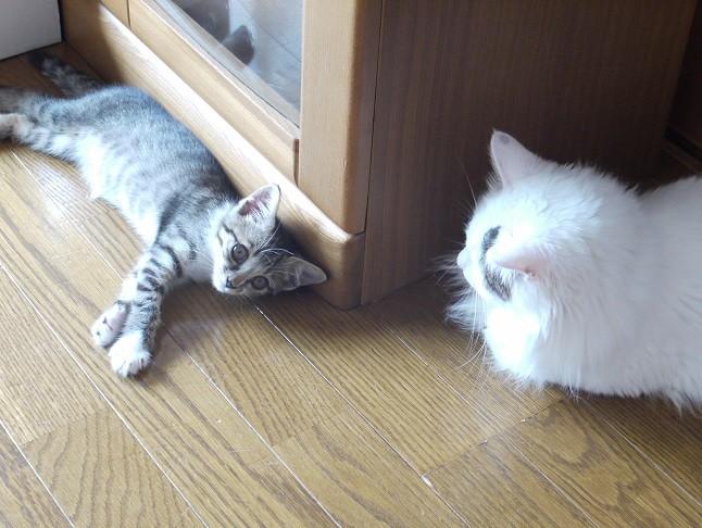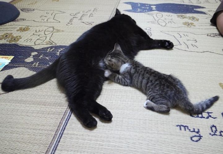 まちがえて先代猫ラオウのお乳を吸いまくるの図。
