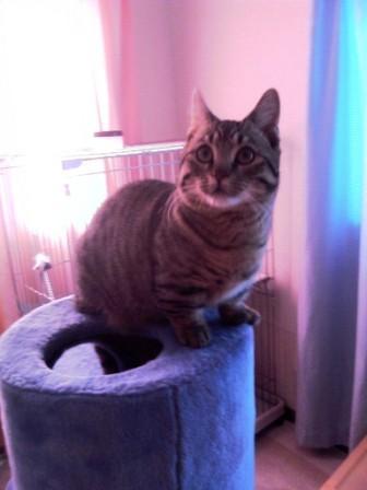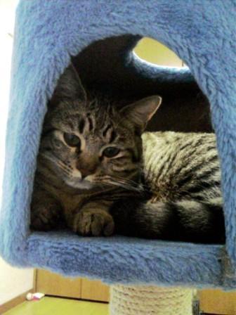 ↑の写真はお気に入りのキャットタワーでくつろいでる