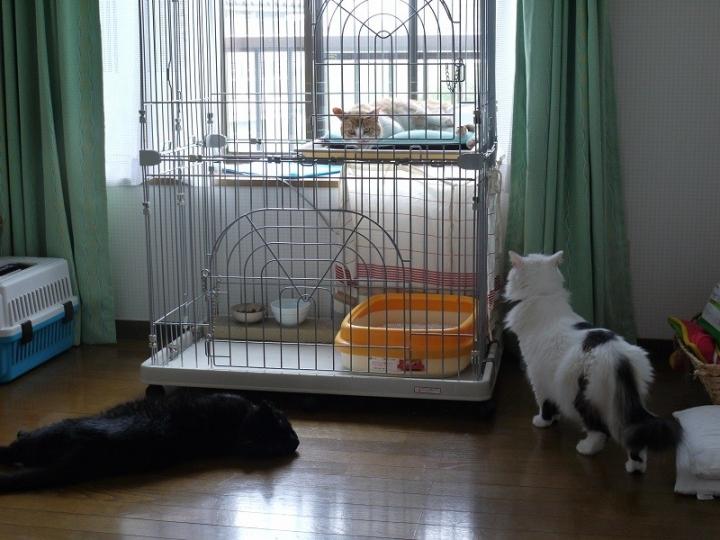 残念ながら、先代猫ラオウがめちゃくちゃ威嚇しまくるので仕方なくケージで
