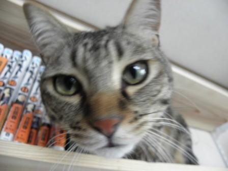 アタックして逃げていく遊びの誘い、かぷっと甘噛みして逃げていく誘い、ドライフードの入った容器をていっと下に落として首を傾げてこちらを見て誘う・・・段々自分の可愛さをわかっているんじゃないかと思えてなりません。