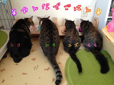 いつも仕事から帰ってきて、にゃんこの食事風景を後ろから眺めるてるととっても幸せな気持ちになります♪