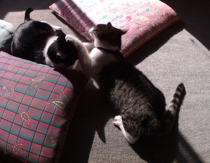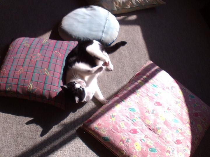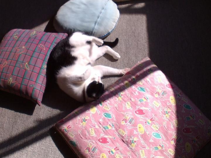 「日向ぼっこや。七七保も、ここでコロンコロンしぃ。」