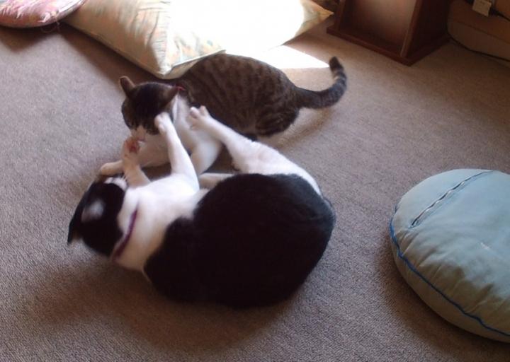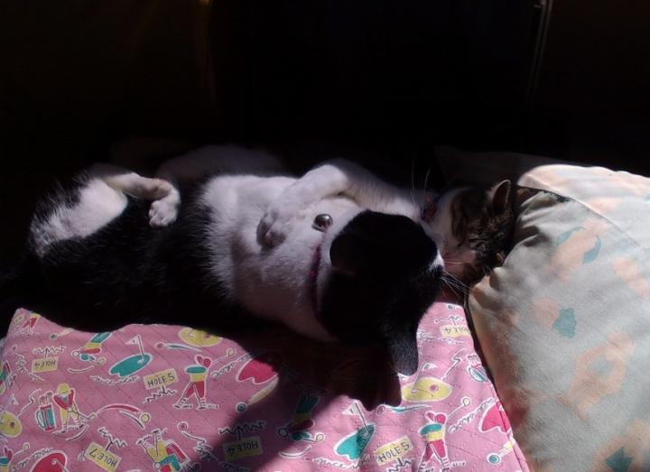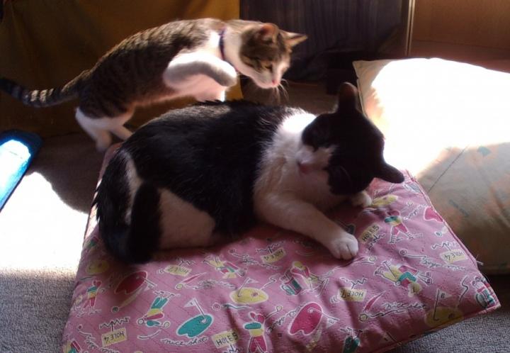 「ナアナア、ハチお兄ちゃん、日向ぼっこもええけど、何かちてあちょぼうニャ~。」