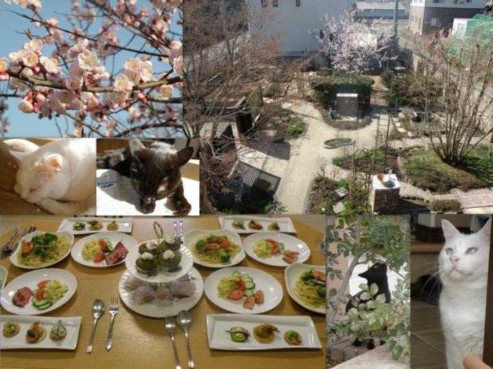 最後の写真は、最近の庭と数日前の夫の誕生日の食事、そして愛猫達です。
