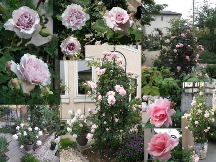 この薔薇は南に大きなオベリスク、裏には鉢でオベリスクに仕立ててあります。