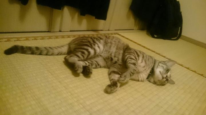 眠いけど、遊びたいし、おじさんの腕枕がいいし、腕枕は暑いし