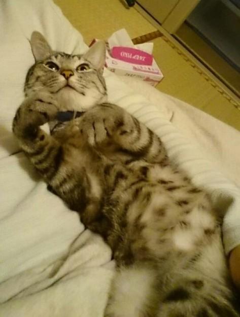 おなかいっぱいでごろん。