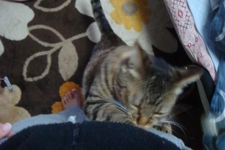 部屋に入ると足で爪とぎ。ジーパンだとより激しさを増す。