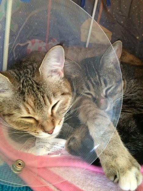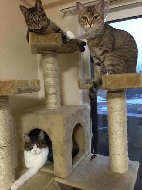 ハナはいつもちょっと離れたところから2にゃんを見守ってくれるお母さんみたい・・・笑