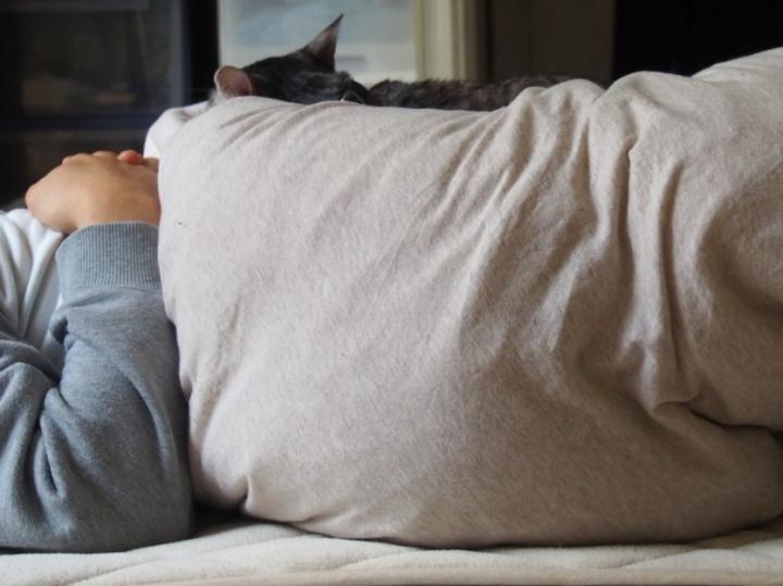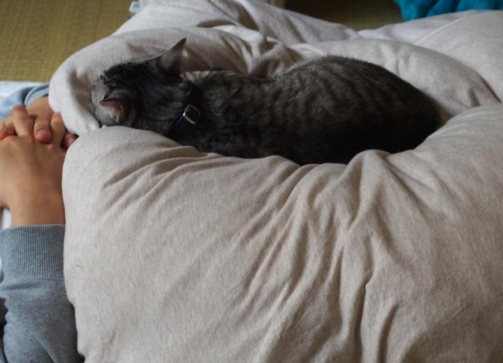 下敷きの人間ともども、朝寝坊が決定しました。
