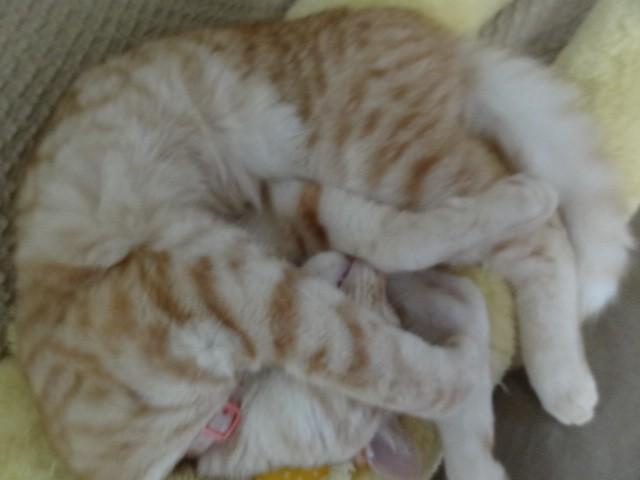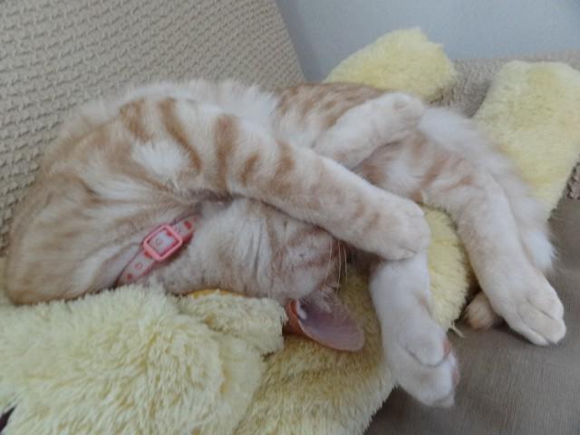 ぬいぐるみの上に、