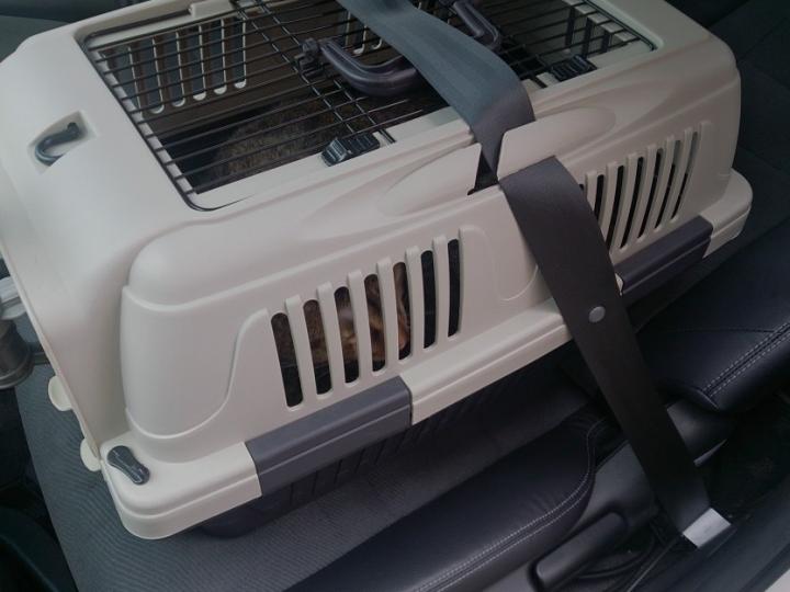 助手席でニャゴニャゴ2匹で合唱中