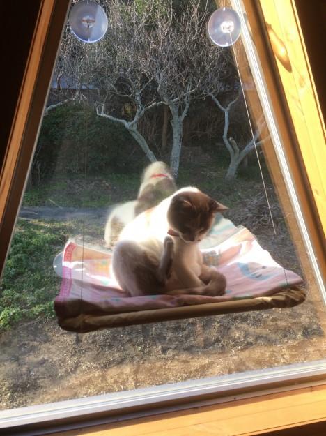 おじいちゃんがアポロを散歩に迎えに来た時も、ニャー。