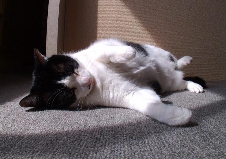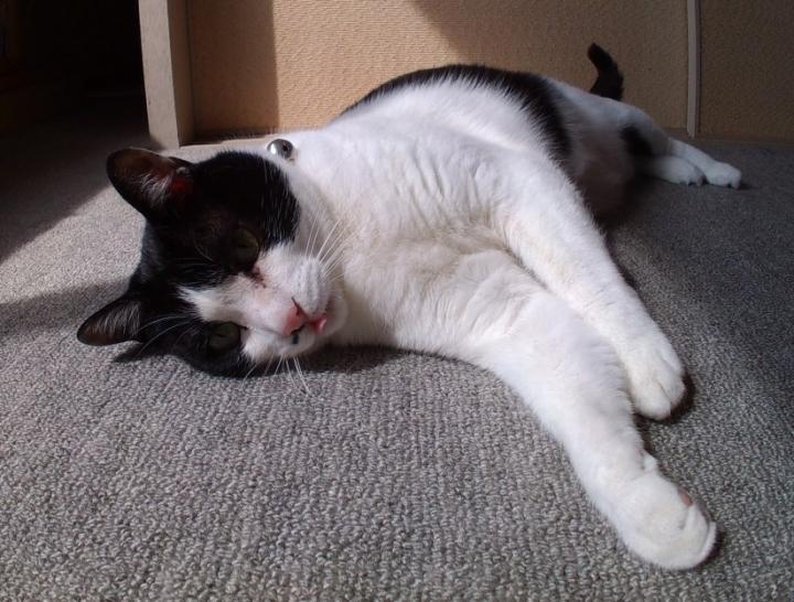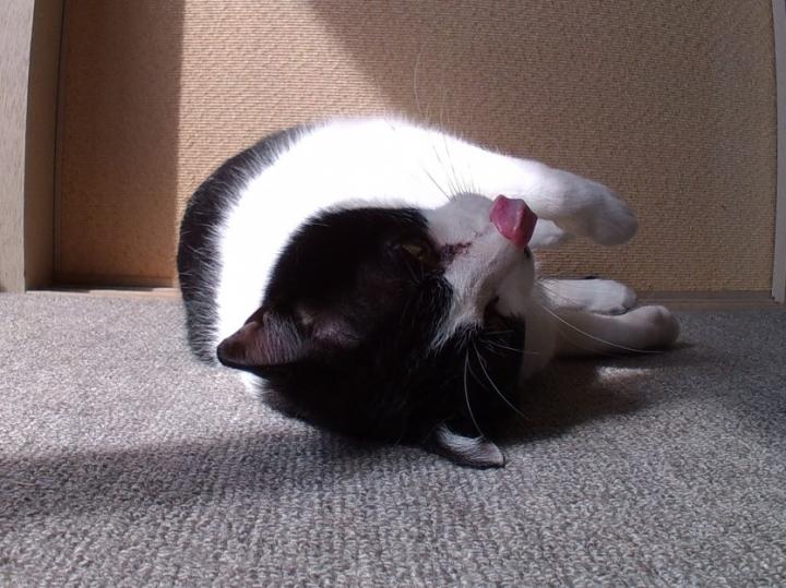 少しだけお日様が入っている場所で、くつろぐハチ君。