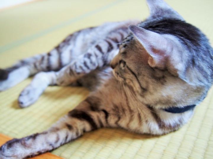 (最初はリビング、次に寝室・・とスペースを区切って慣らすのが良いと教わりましたが、リビングと廊下の境界がアコーディオンカーテンのため、下をくぐって和室へ行っちゃいました)