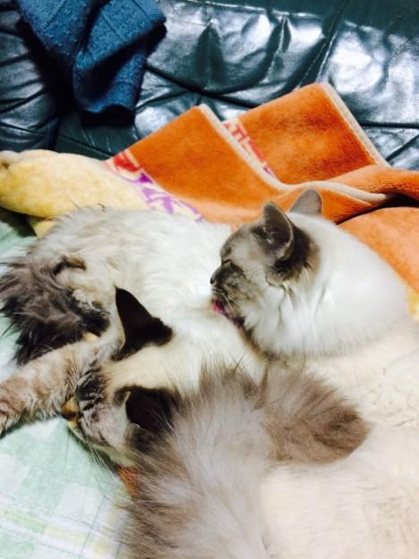 半年後に妹仔猫ちゃんが来た時からは 妹花ちゃんの面倒をよく見てくれてありがとう!