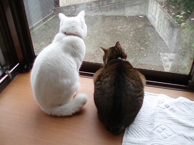 僕たちご覧の様に真っ白と黒っぽい猫だから主は洋服の色で困ってるよ。