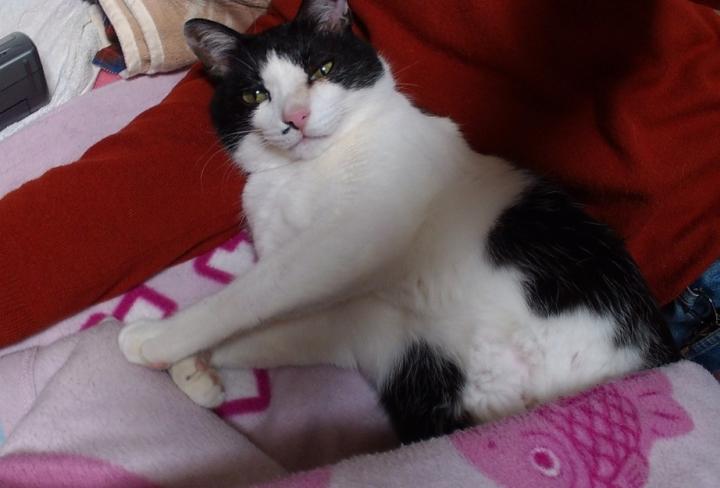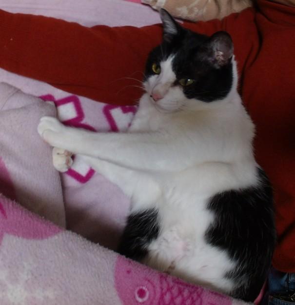 お昼寝しようと、ベッドに横になったら、やって来て、腕枕です。