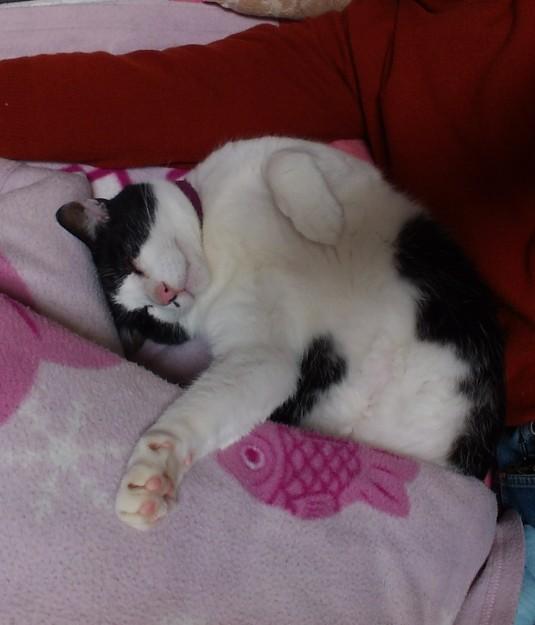 さっきまで、ペットベットに入って、ひとりで寝てたやん。