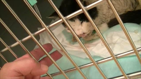 担当獣医さんから丁寧な説明を受けた後、点滴中のケンナオ君と、ご対面しました。
