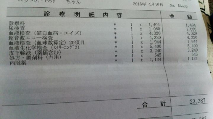 色んな検査して全部で約2万5千円位(◎-◎;)