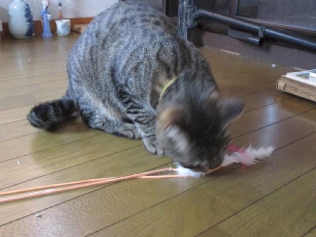 このはが咥えて逃げましたが、逃げるジャラシをコジローが追い油断した隙に捕られました。