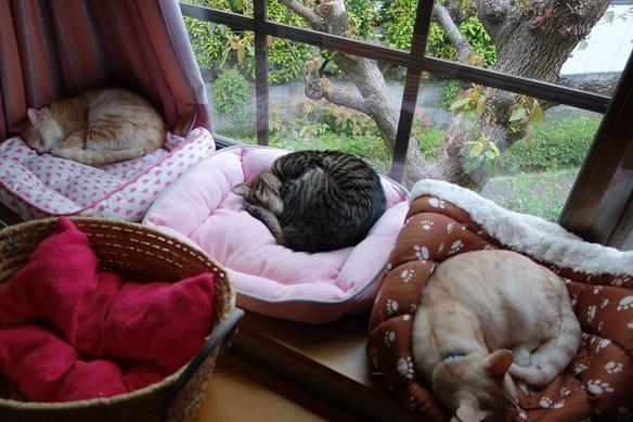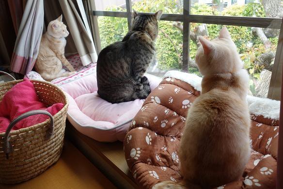 昨日までこたつで昼寝してたこの子達も、お日様の温かさに誘われて出てきました~~♪