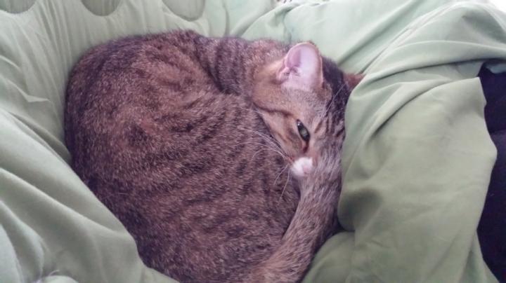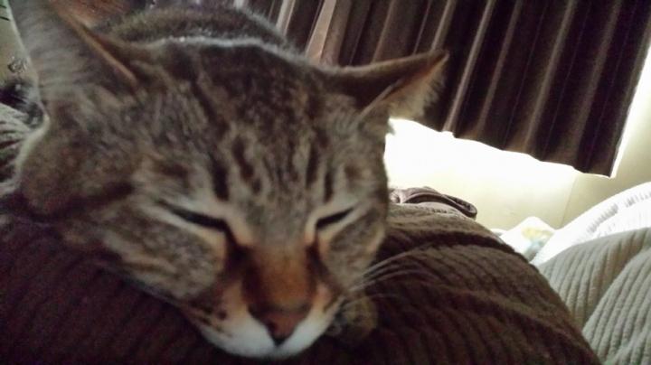 ドラくん、ワタシの胸の上で寝てるんですよ(泣)