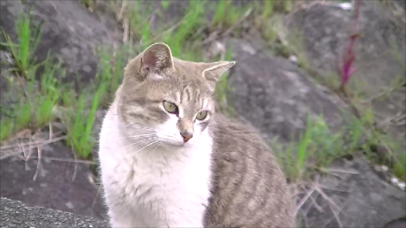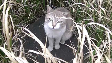 ※この動画には、グレーの猫が1匹と、漁港風景しか映っていません。