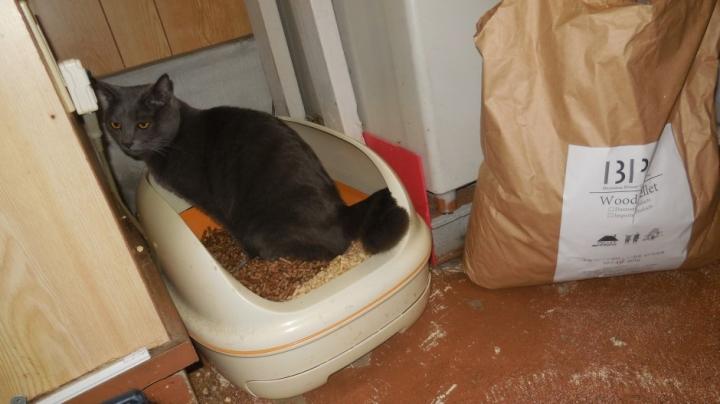 トイレの砂も多めに(今回は新しいチップ・・色が違ったのね・・・)