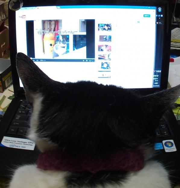 七七保は今、お昼寝中なので、ハチ君だけパソの前へ。