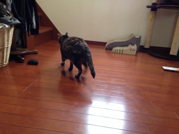 困ったように鳴く姐さん、無言で逃げ回るハンちゃん、ものすごい目ヂカラ&