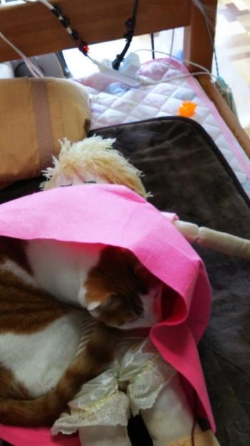 人形のスカートの中に潜り混んでます( ̄ー ̄)