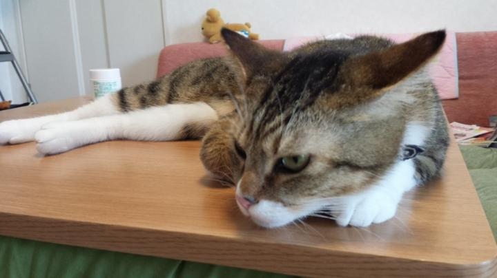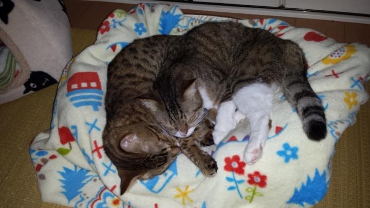 ベッドで寝てるニコちゃんに無理矢理グルーミングして、結局は上に寝てしまう。