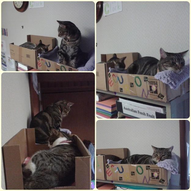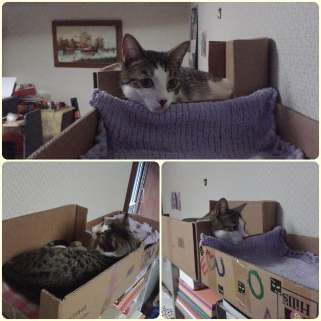 箱のサイドを開けることによって 着地点 兼 寝床 にしました。