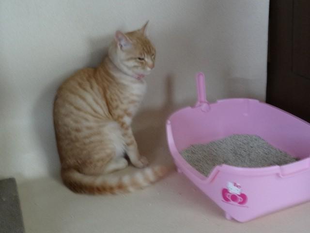 お、マロンがトイレの前に!