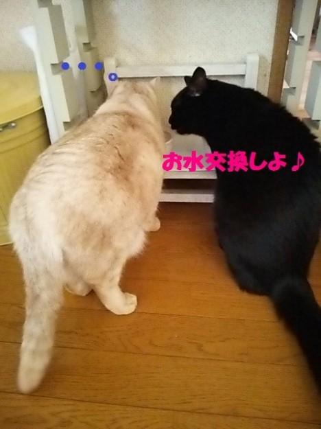 気温が上がってくると、猫様たちのお水の回数が増えますね