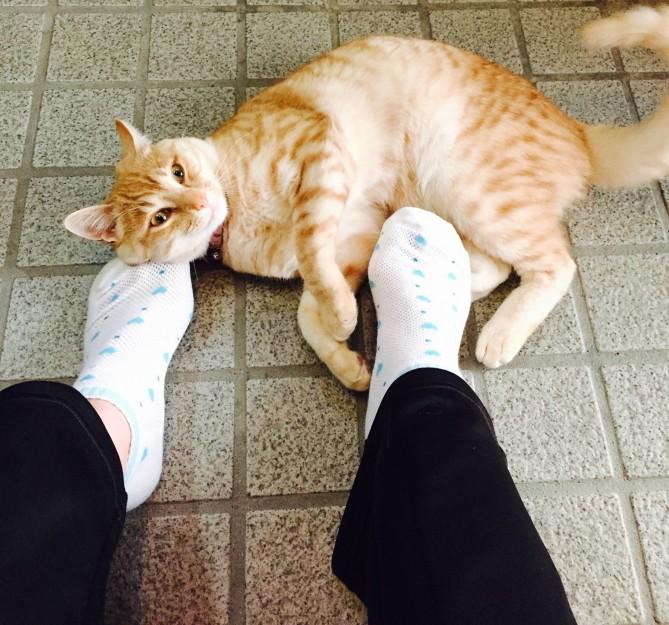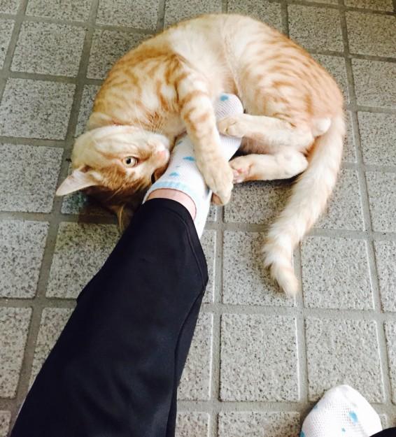 マロン自ら、足元にやってきてゴロリンと寝転ぶのです。